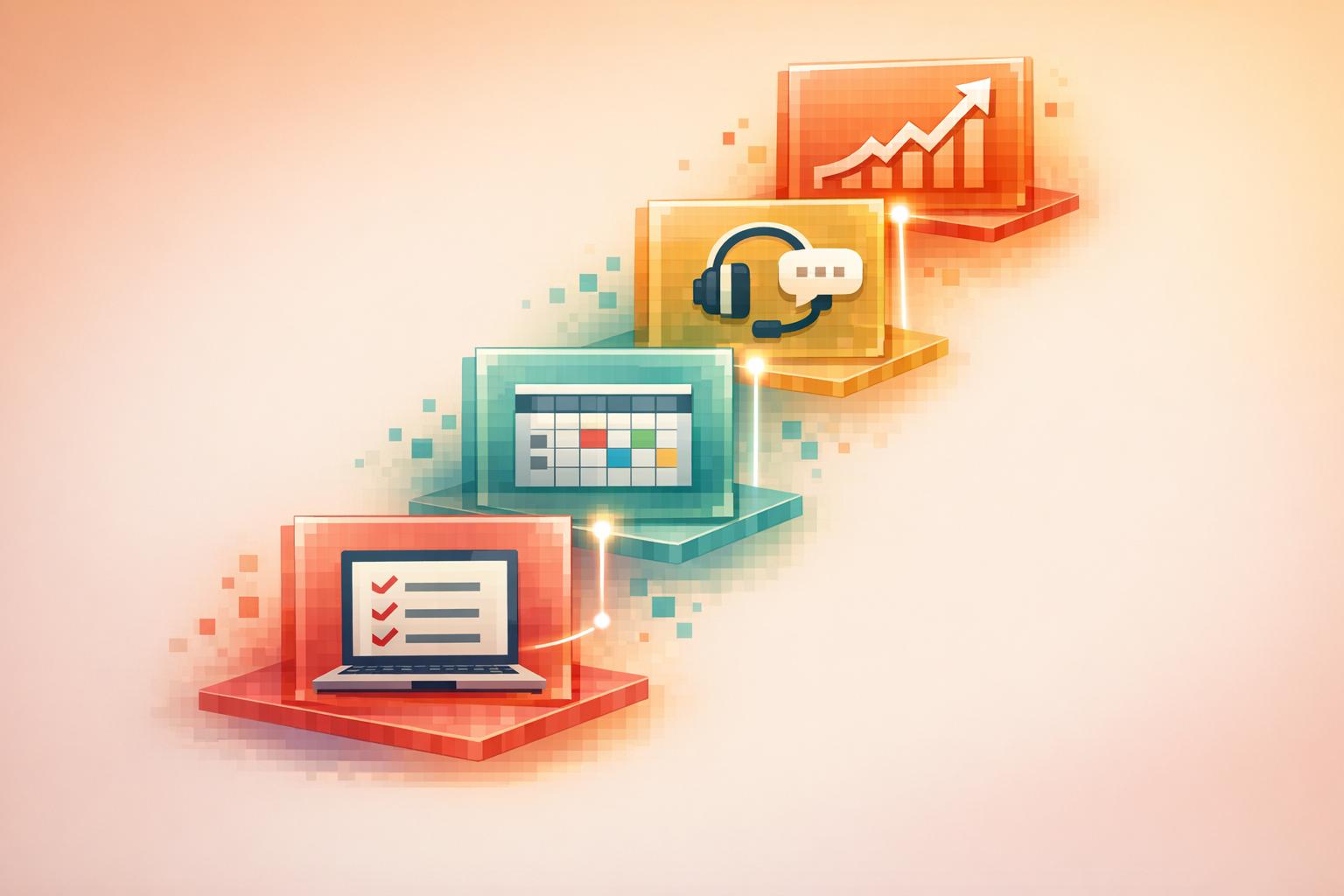 Start by streamlining repetitive and time-consuming tasks such as filling out forms, scheduling training sessions, and handling documentation. These tasks often eat up a big chunk of the onboarding process. By automating workflows for things like data collection, system updates, and introductory training modules, you can cut down ramp-up times. This means new hires can spend less time on administrative tasks and more time diving into their roles and connecting with clients.